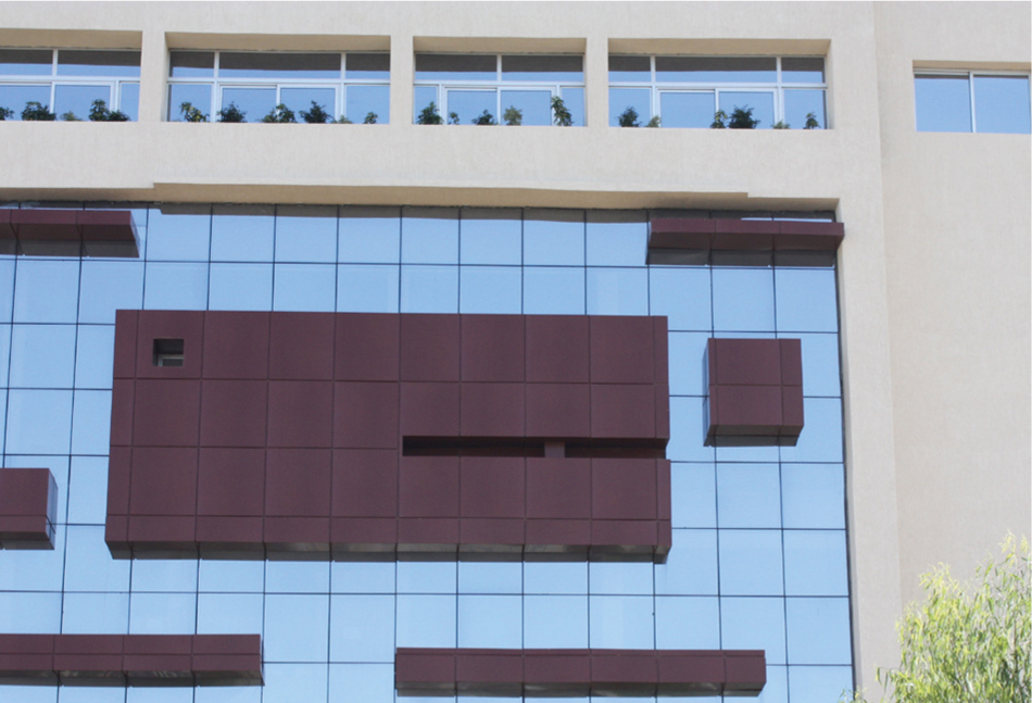 EleCmar : Alubond Rouge,Stopsol Bronze 6mm Alka Aluminium.